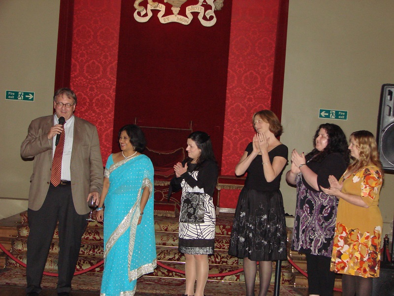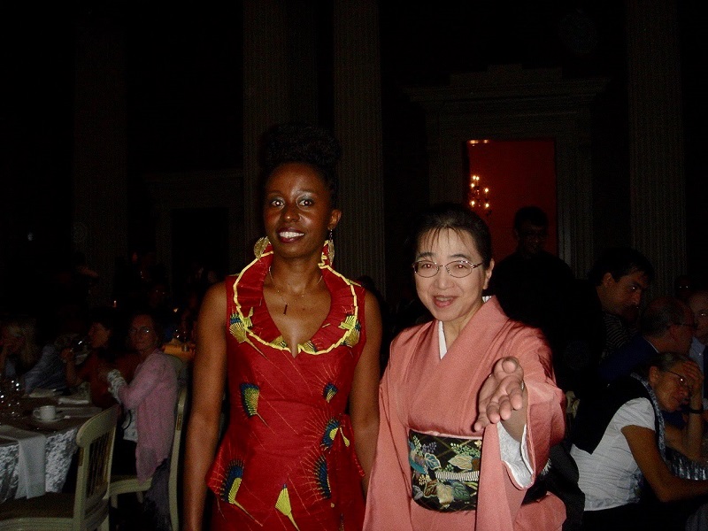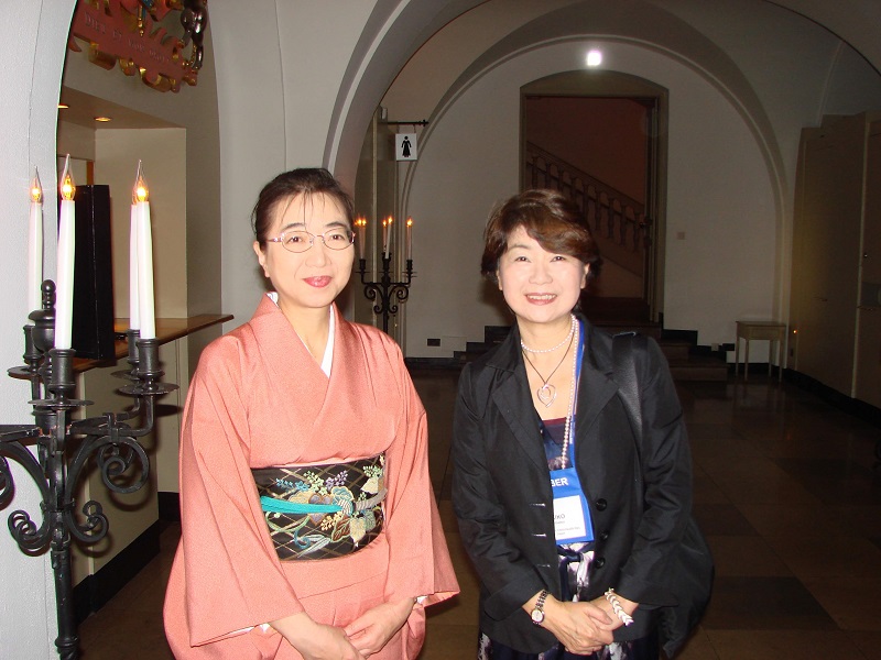 また、2012年ロンドンで開催されたHSでは、この年に優秀賞を授与された研究者の方からのお申し出で、目を奪われるような素敵なドレスに身を包んだ女性と一緒に写真を撮っていただきました(写真11)。