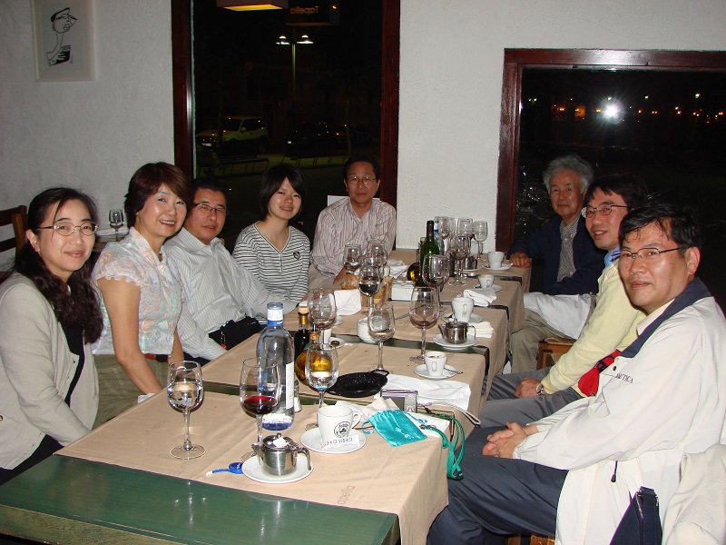 写真4:2009年・ビルバオ(スペイン)にて行われた食事会。国内の大御所と若手とが一堂に会し、交流を行います