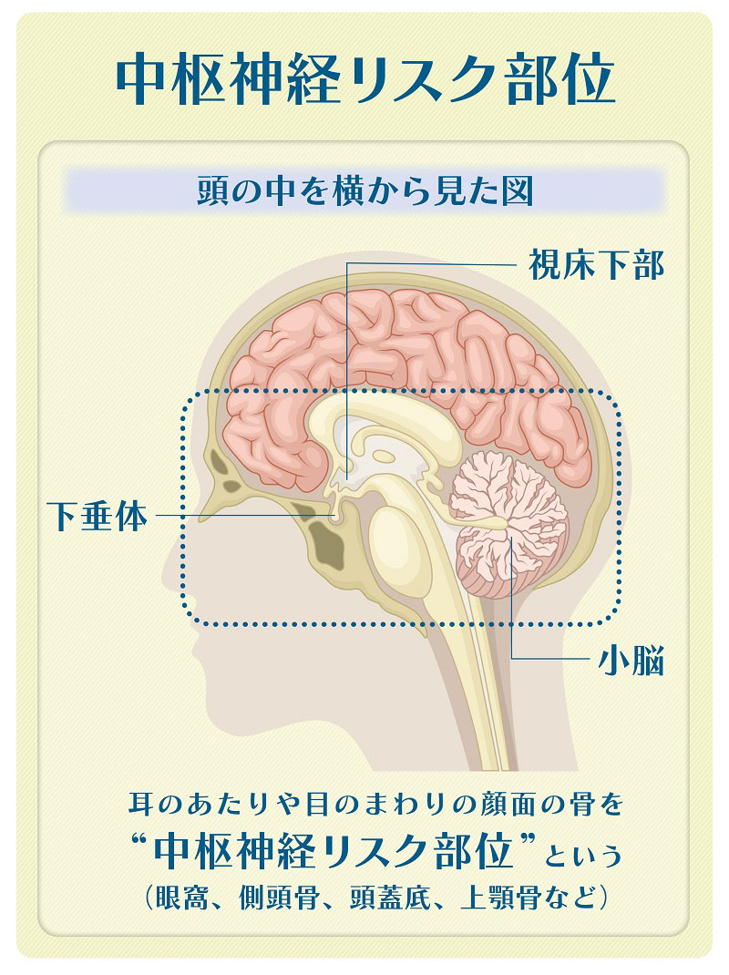LCHと診断された患者さんのご家族には、いつも頭の中を横からみた絵を少し描いてお話ししています。中枢神経に関連した晩期合併症は、頻度はまれですがLCHにはとても特徴的です。特に、中枢神経リスク部位の骨に病変がみられた症例では気を付けて見守っていきます。すこし知っていることで早く変化に気付き、次の対処につながれば、と思います。
