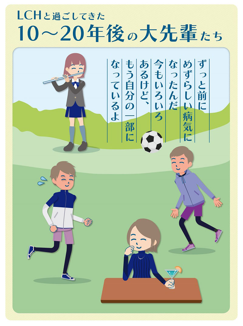 晩期合併症の話題は、ご本人やご家族にとっては知れば知るほど怖くなってしまうのではないか、と心配します。でも、大先輩たちは、みんな自由で楽しそうです。そして、とっても頼もしい。なんとかなるよ、と教えてくれています。みなさんに、これからもぜひいろいろなことに挑戦していってほしいと願っています。